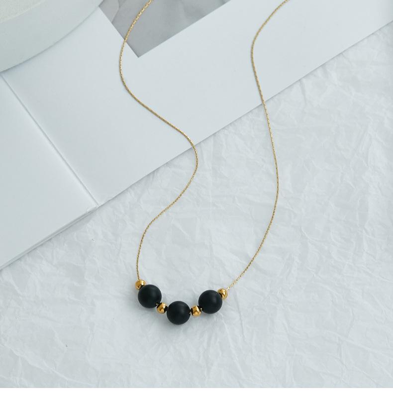 ✔ Finish: Smooth, polished black beads with a sleek metal chain