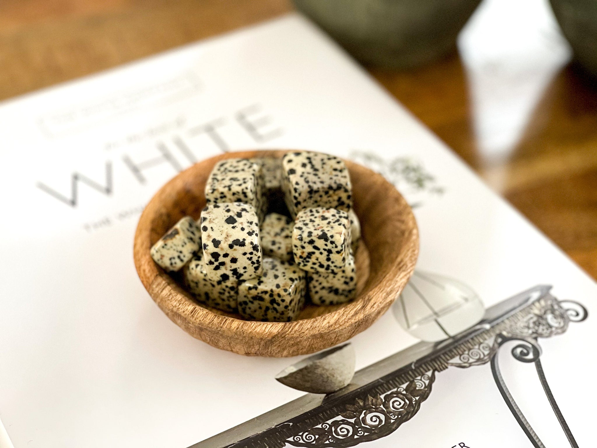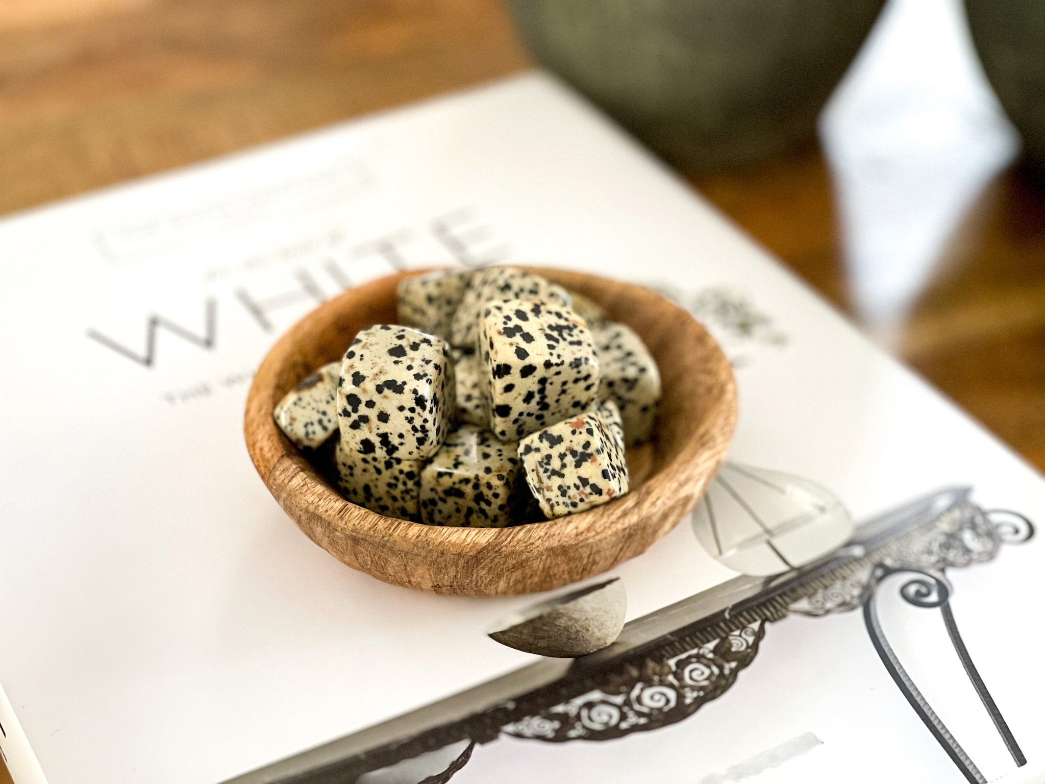 Dalmatian Jasper, also known as Dalmatian Stone, is a powerful stone that brings joy and positivity into one's life. It is a type of chalcedony that is known for its unique black and white spotted pattern, resembling a Dalmatian dog. These small tumbled stones are the perfect size to keep in your pocket or purse, making them an ideal tool for carrying the benefits of the stone with you wherever you go.