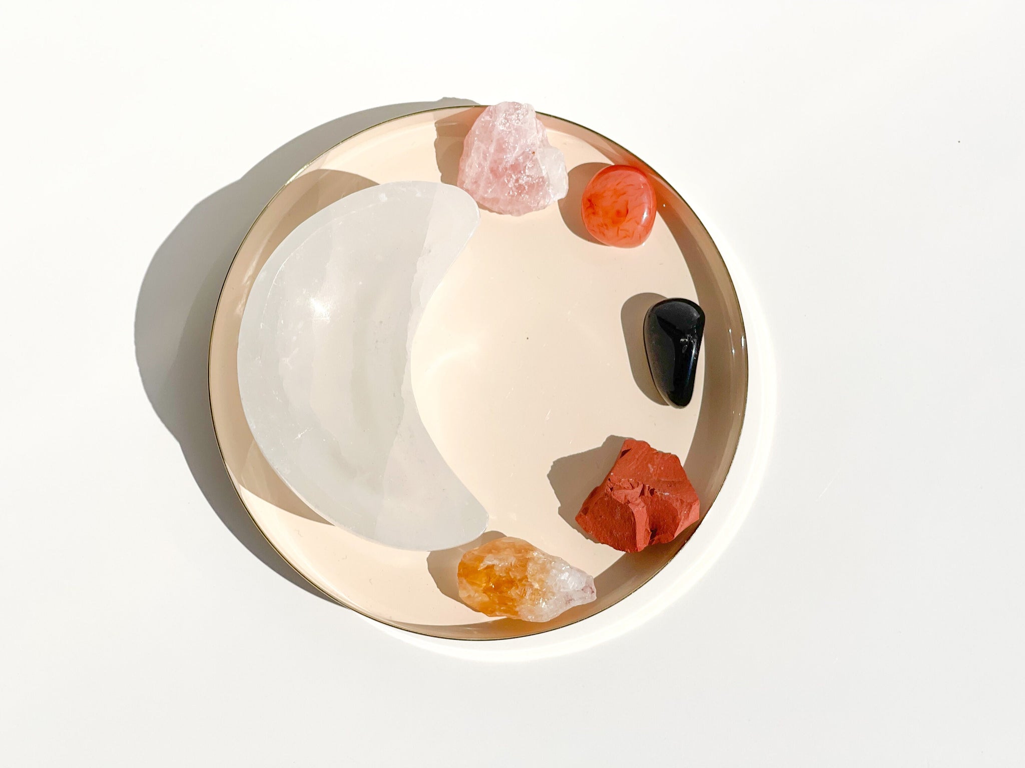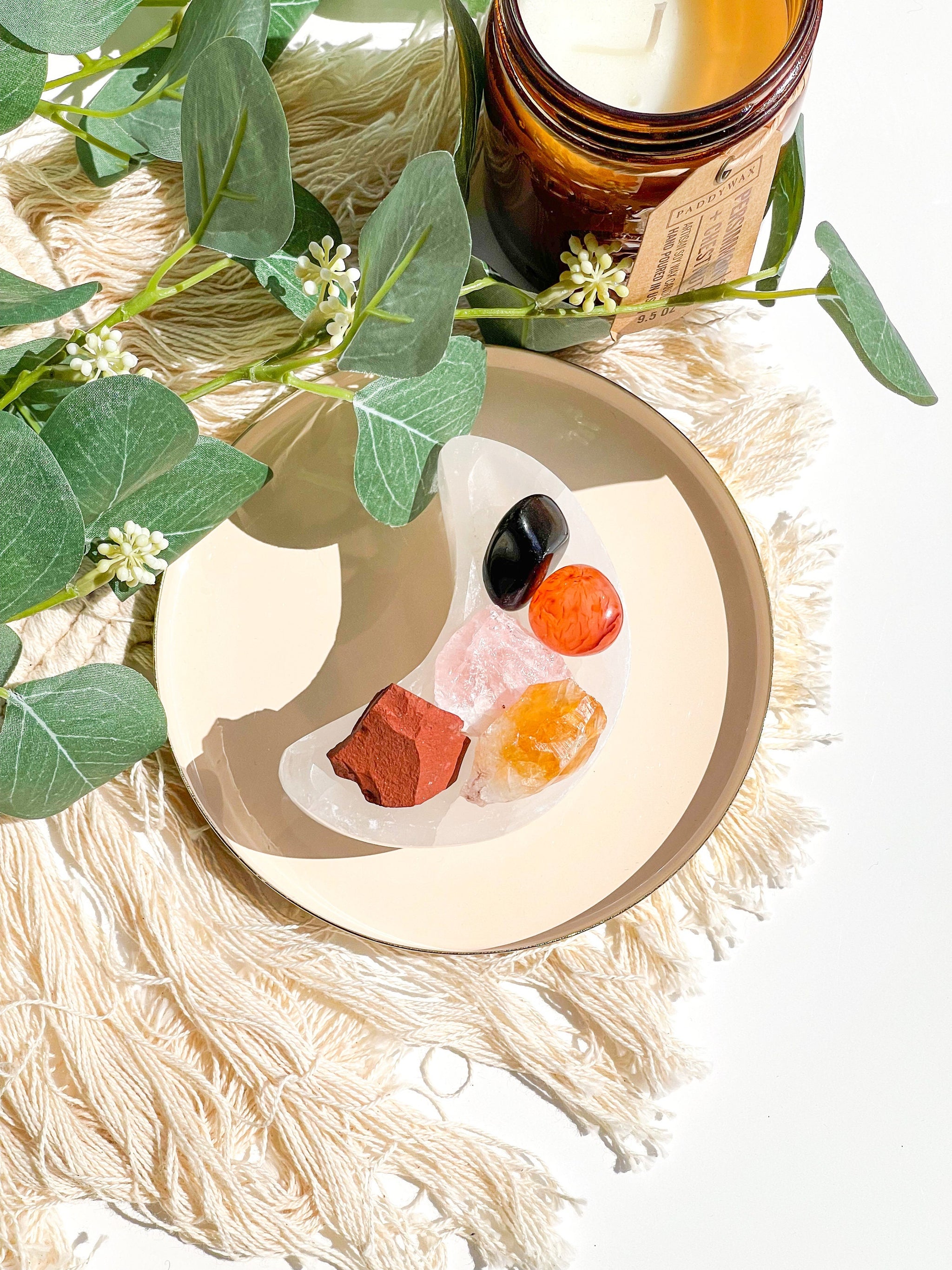 Selenite Moon Bowl: Elevate the energy of your crystals with this enchanting Selenite moon bowl. Its purifying and harmonizing properties also work to balance and amplify the energies of your Aries zodiac crystals.