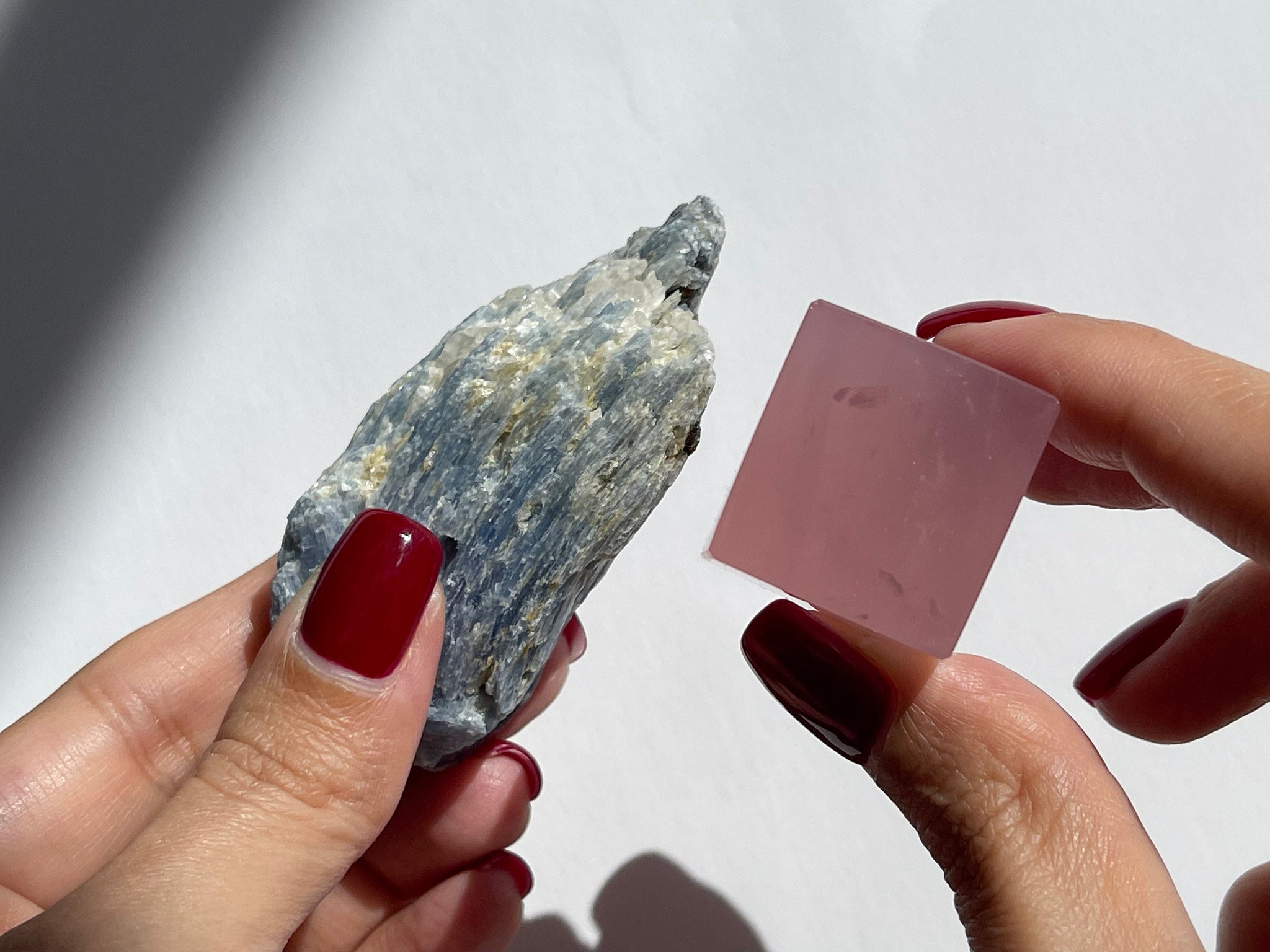 Whether carrying them in your pocket, using them in meditation, or placing them in your sacred space, the Rose Quartz and Blue Kyanite combo is a beautiful and powerful tool for personal growth and spiritual advancement.