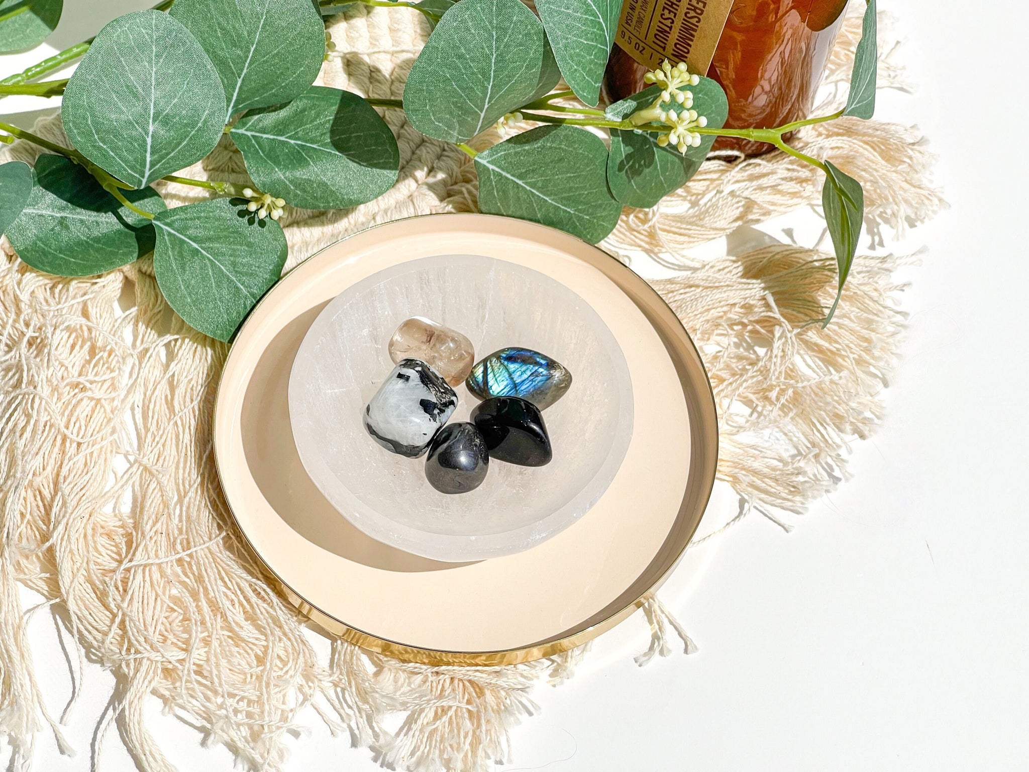 In addition to these five powerful crystals, your Scorpio Zodiac Crystal Set comes with a high-quality Selenite Bowl for energetically cleansing and charging your gemstones. Selenite is a powerful crystal that clears stagnant energy and amplifies the properties of other crystals, making it the perfect addition to your set. The Selenite Bowl serves as a beautiful and functional centerpiece for displaying and storing your crystals while keeping them energetically cleansed.