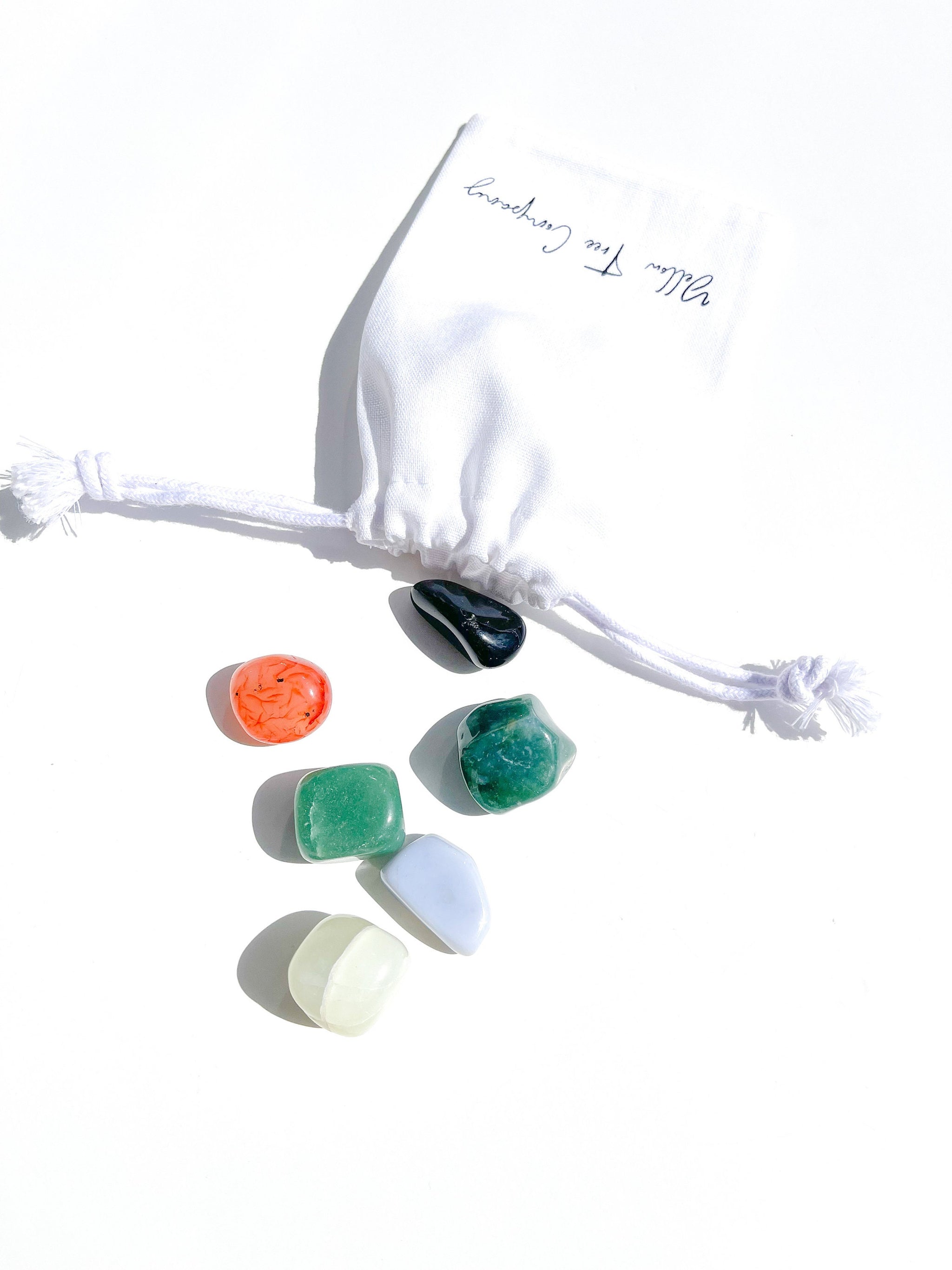 Immerse yourself in the grounding and nurturing vibrations of the Virgo zodiac sign with our Virgo Zodiac Crystal Ensemble, accompanied by a Selenite Moon Bowl. This expertly curated set showcases six unique crystals - Lace Agate, Moss Agate, Jade, Aventurine, Onyx, and Carnelian - handpicked to harmonize with Virgo's traits and foster emotional and spiritual equilibrium. Maximize their healing capacity by placing them in the enchanting Selenite Moon Bowl, which cleanses and recharges your crystals' energies. Strengthen your connection to your Virgo essence and elevate your spiritual journey with this exquisite set, available exclusively in our Etsy store.