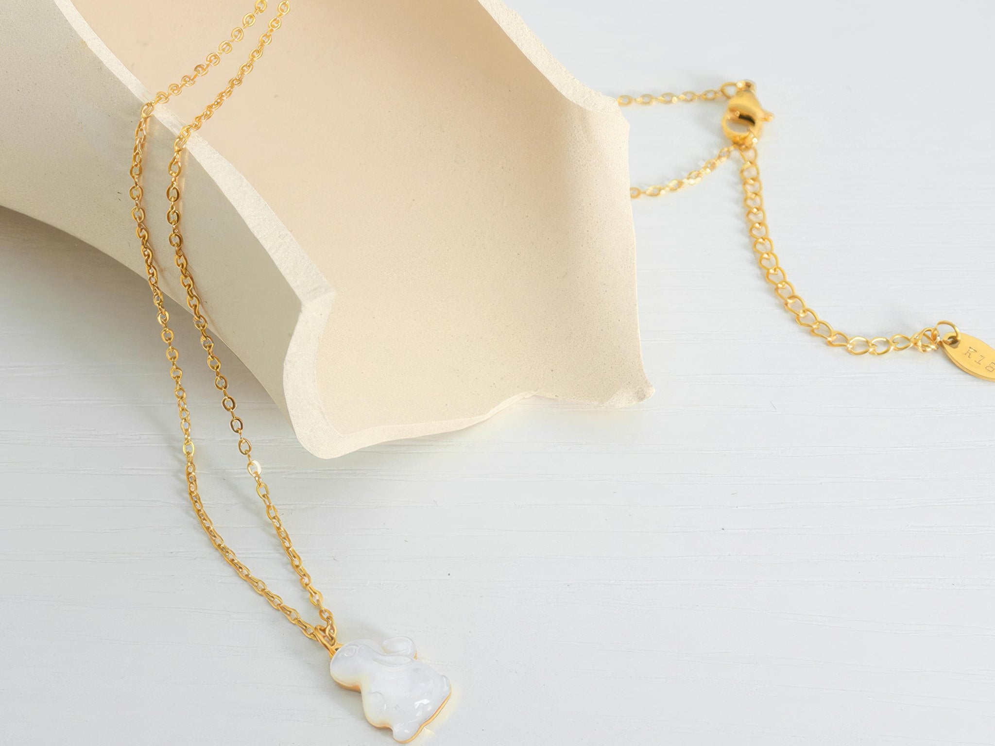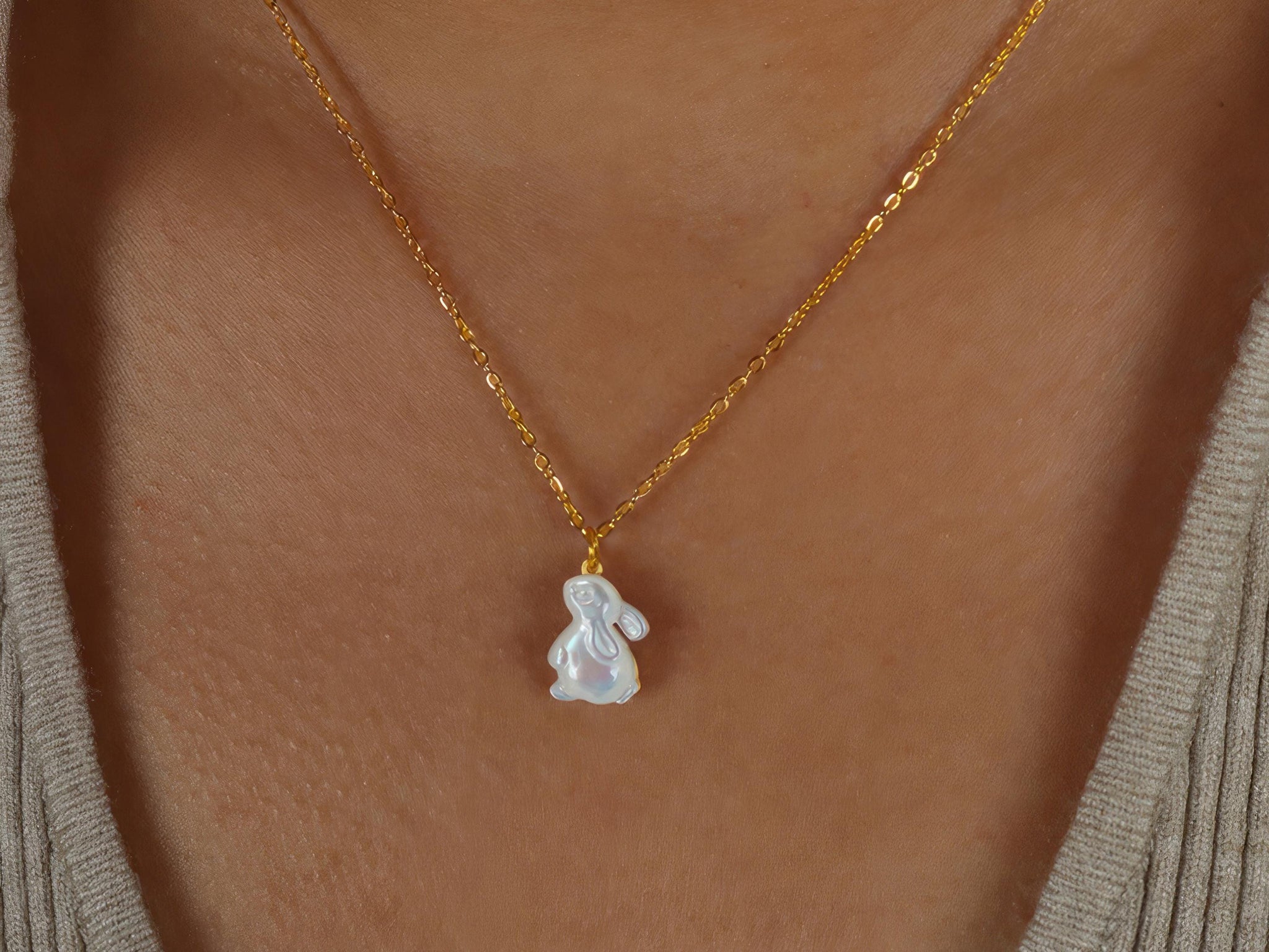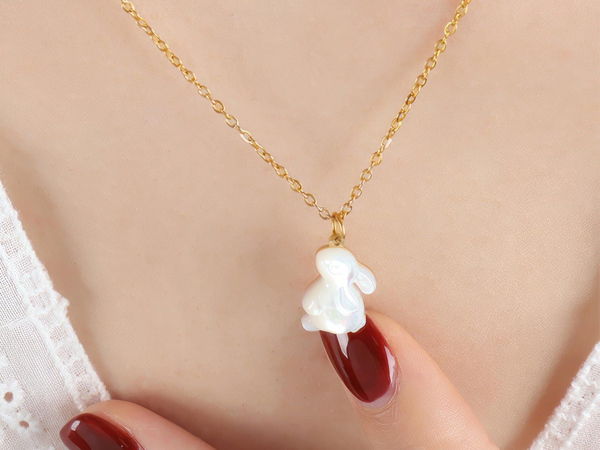This adorable White Shell Rabbit Pendant Necklace brings a playful yet elegant touch to any outfit. The delicate rabbit pendant is crafted from high-quality white shell, giving it a natural shimmer that pairs beautifully with the 18K gold-plated chain. Designed to rest gracefully along the collarbone, this minimalist necklace is perfect for everyday wear and effortlessly adds a bit of charm to casual or formal looks.