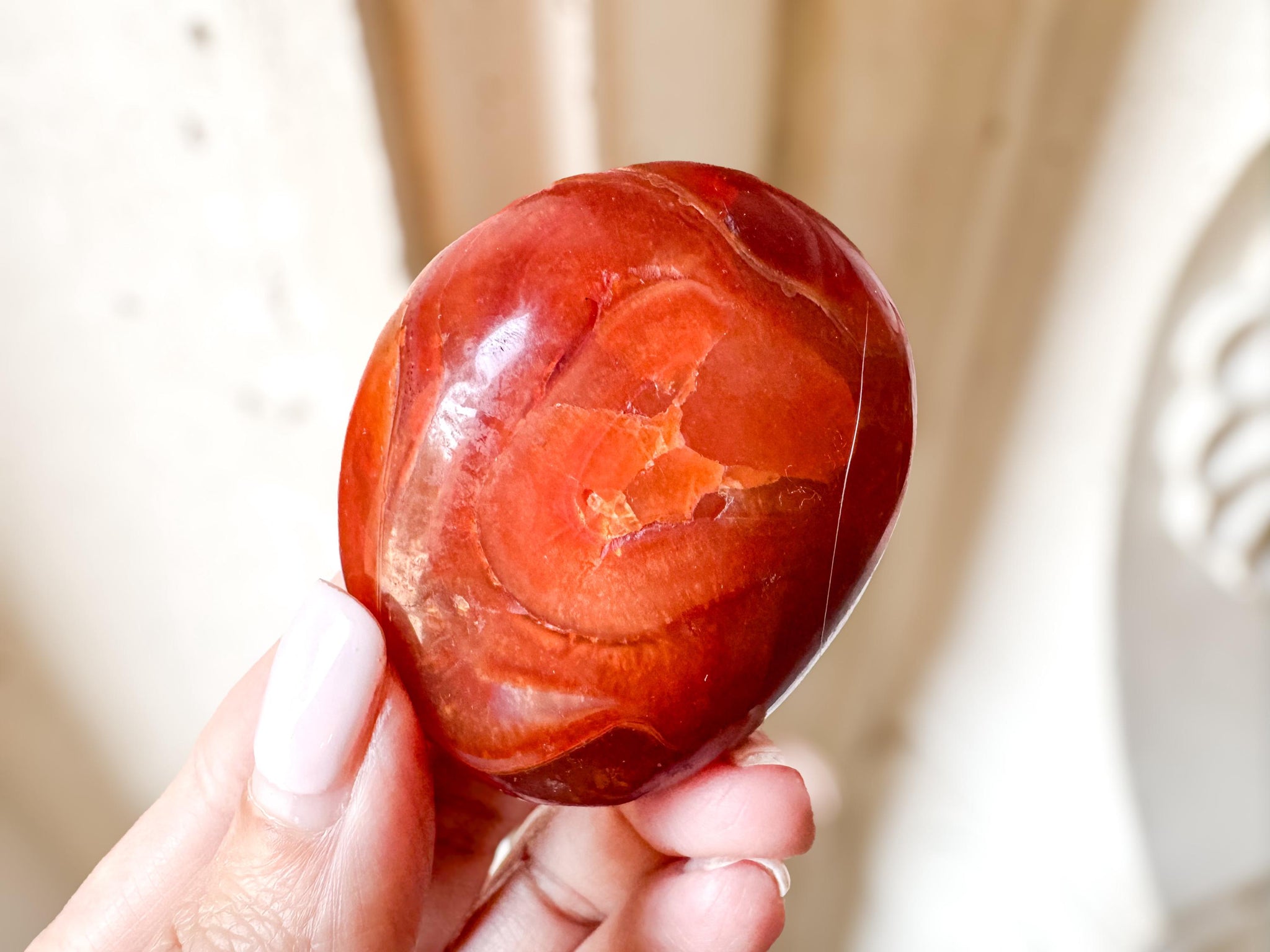 Elevate your energy and ignite motivation with Carnelian Palm Stones, available in three sizes—small, medium, and large—to suit your personal needs. These vibrant orange-red stones are known for enhancing vitality, courage, and creativity. Ideal for meditation, grounding, and chakra healing, each palm stone is smooth, powerful, and ready to energize your space.