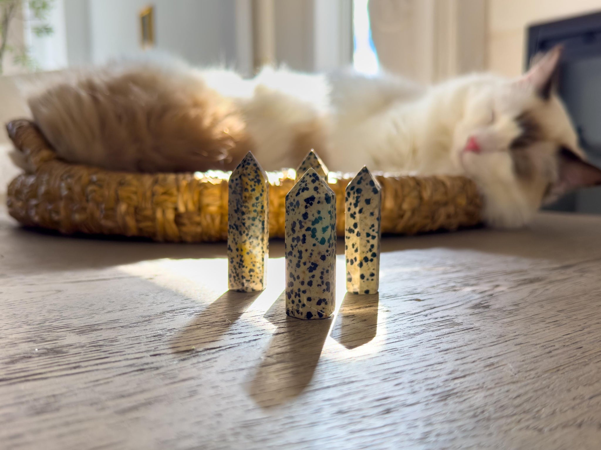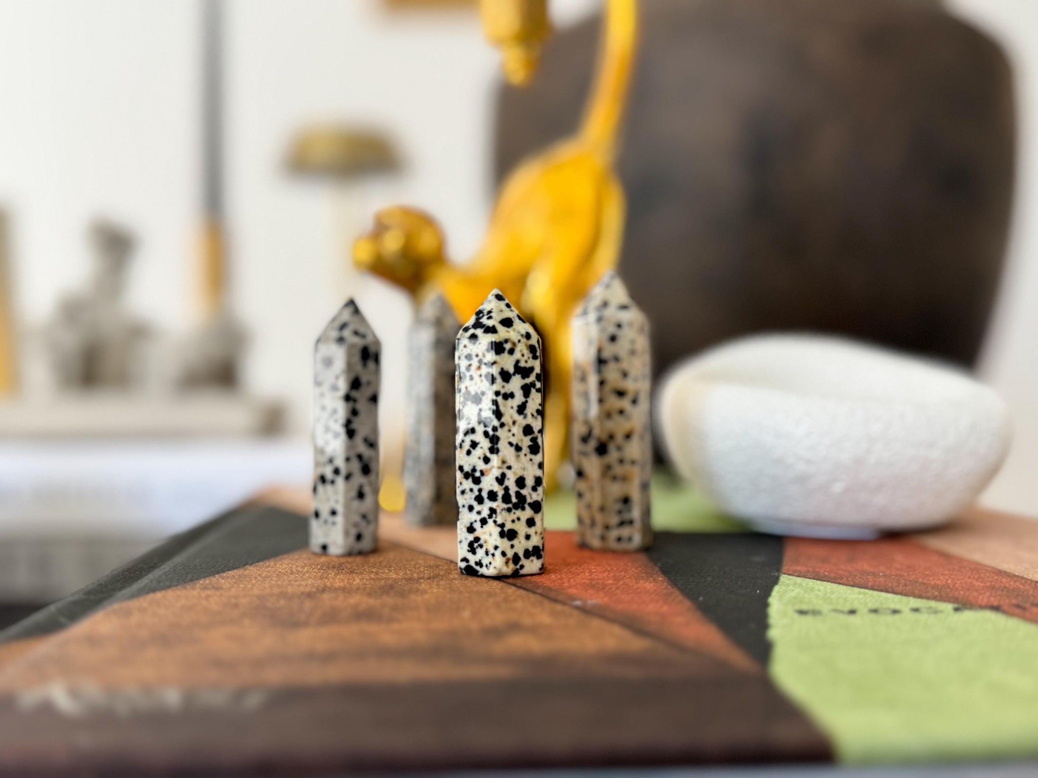 Bring grounding, joy, and playful energy into your life with this Dalmatian Jasper Crystal Tower. With its distinctive black and brown spots, Dalmatian Jasper is both a beautiful display piece and a powerful healing stone. Perfect for meditation, energy work, or as a meaningful gift.