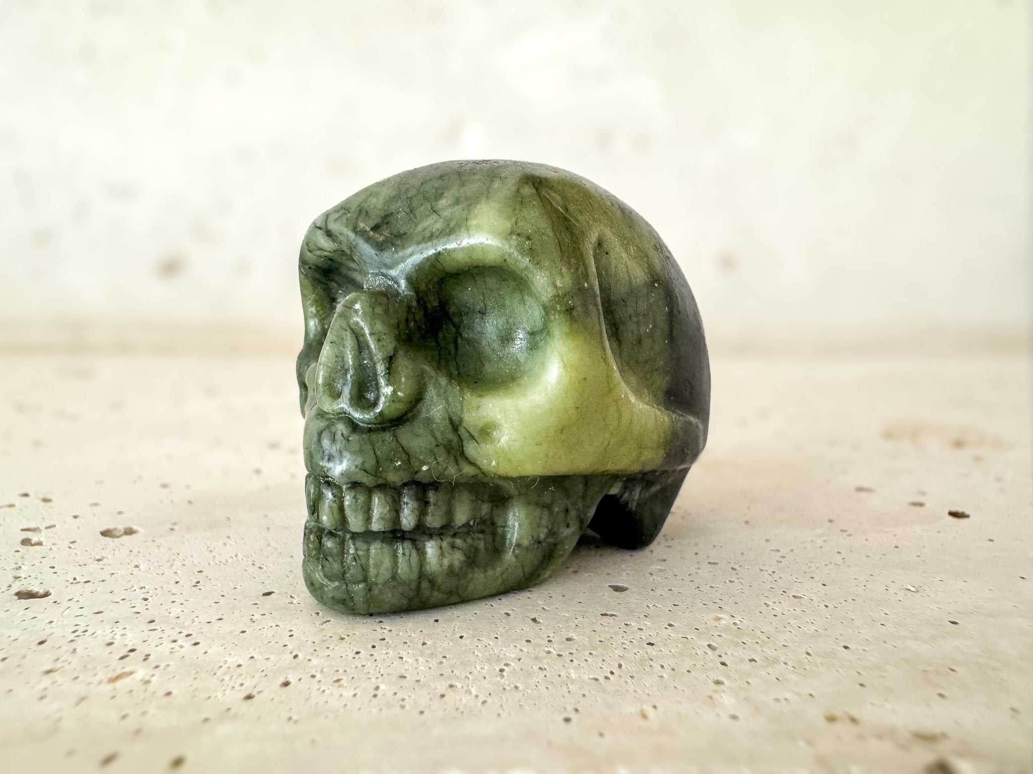 The skull shape amplifies spiritual awareness and symbolizes ancestral connection and deep inner work. Whether you're a collector or an energy worker, this serpentine skull is a unique addition to your sacred space, helping to ground energy, enhance meditation, and promote emotional balance.