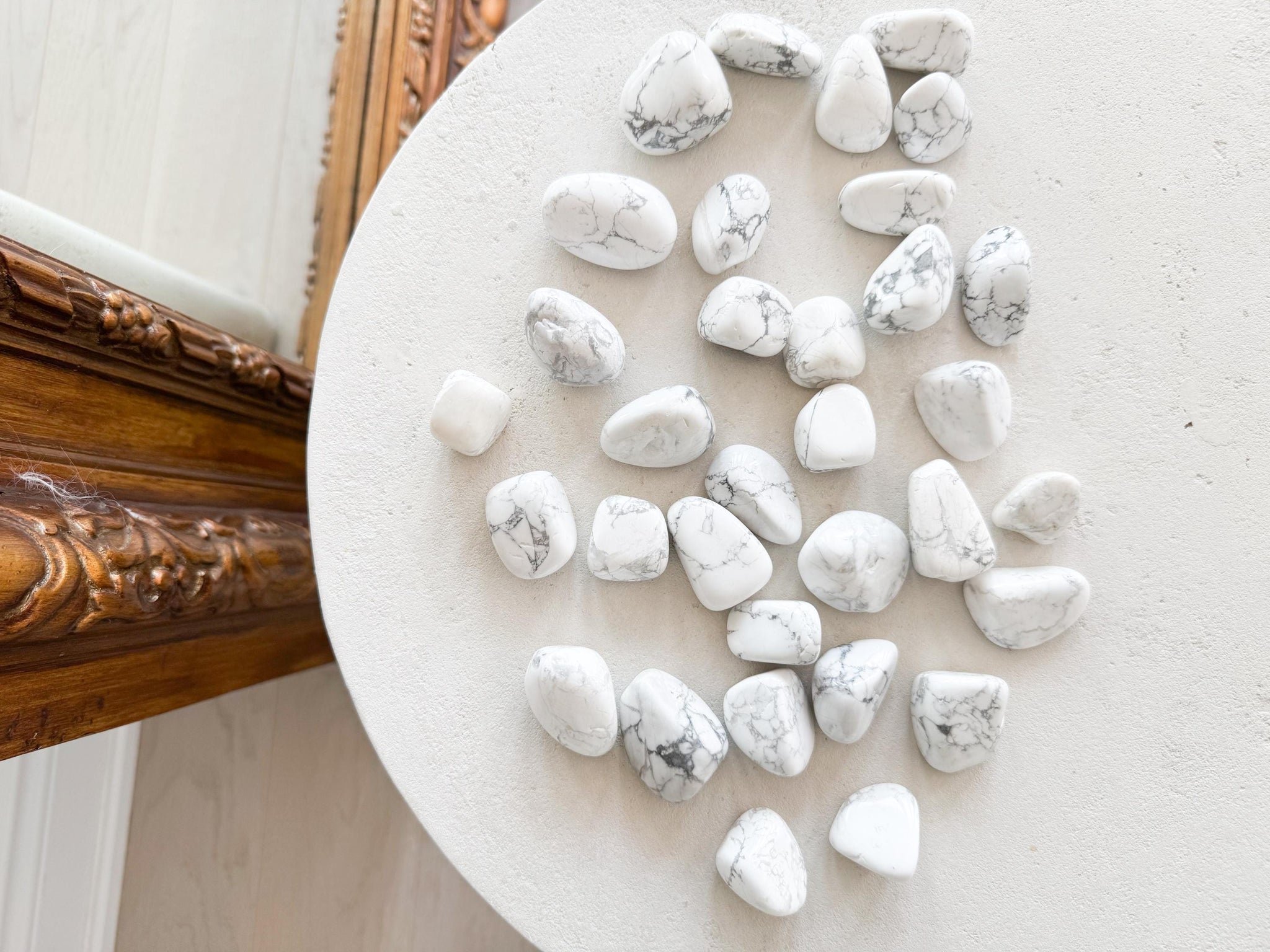Embrace tranquility with these natural Howlite tumbled stones, a crystal known for its calming and stress-relieving properties. Often called the "Stone of Serenity," Howlite is perfect for easing anxiety, promoting restful sleep, and encouraging emotional healing. Whether you're deepening your spiritual practice or adding to your crystal collection, these polished stones are a beautiful and powerful choice.