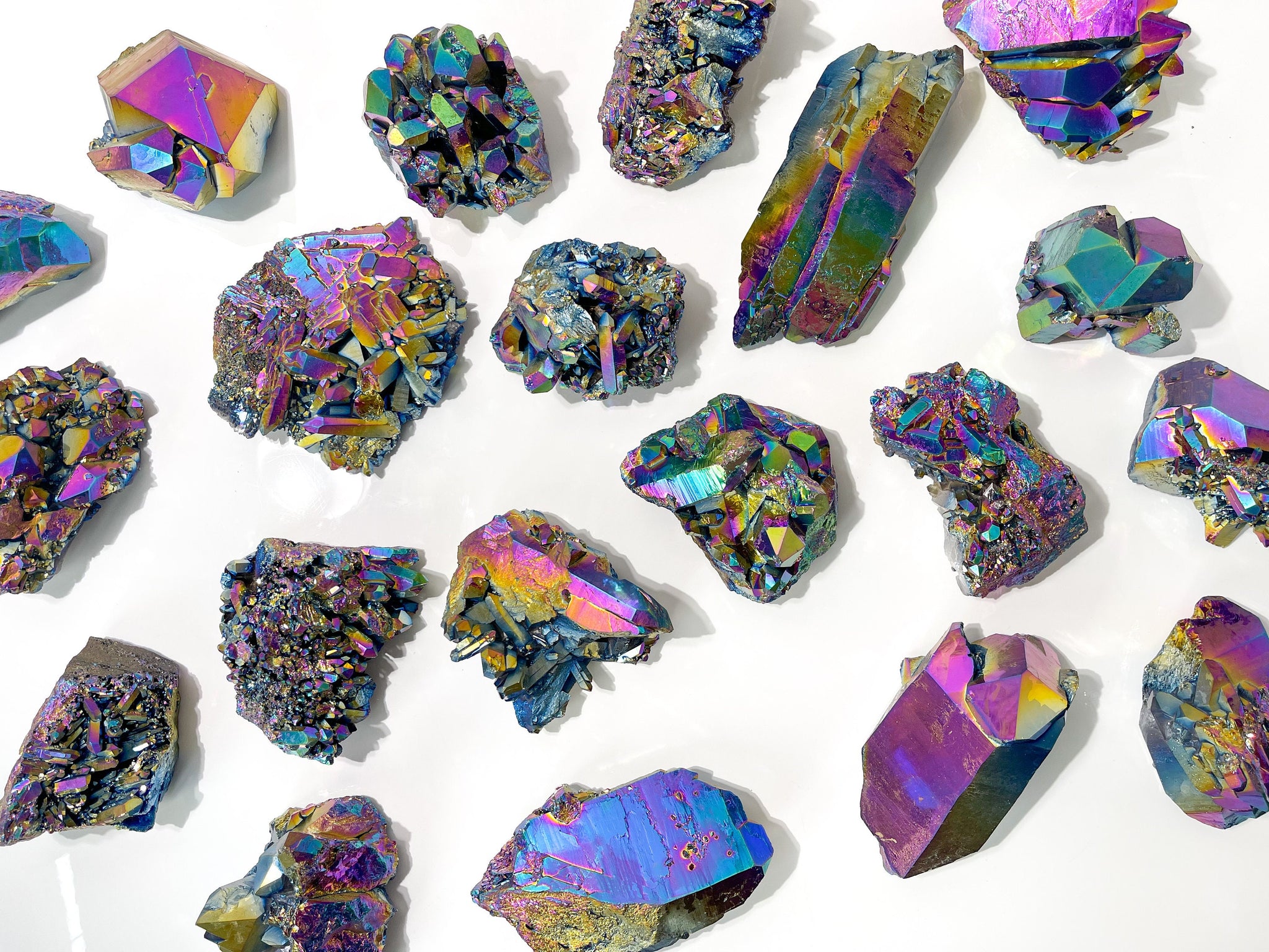 Rainbow Titanium Aura Quartz is a crystal that has been treated with titanium to give it its rainbow colors. This crystal has the ability to bring a feeling of happiness and joy to those who look at it, making it a popular choice for use in homes and offices.