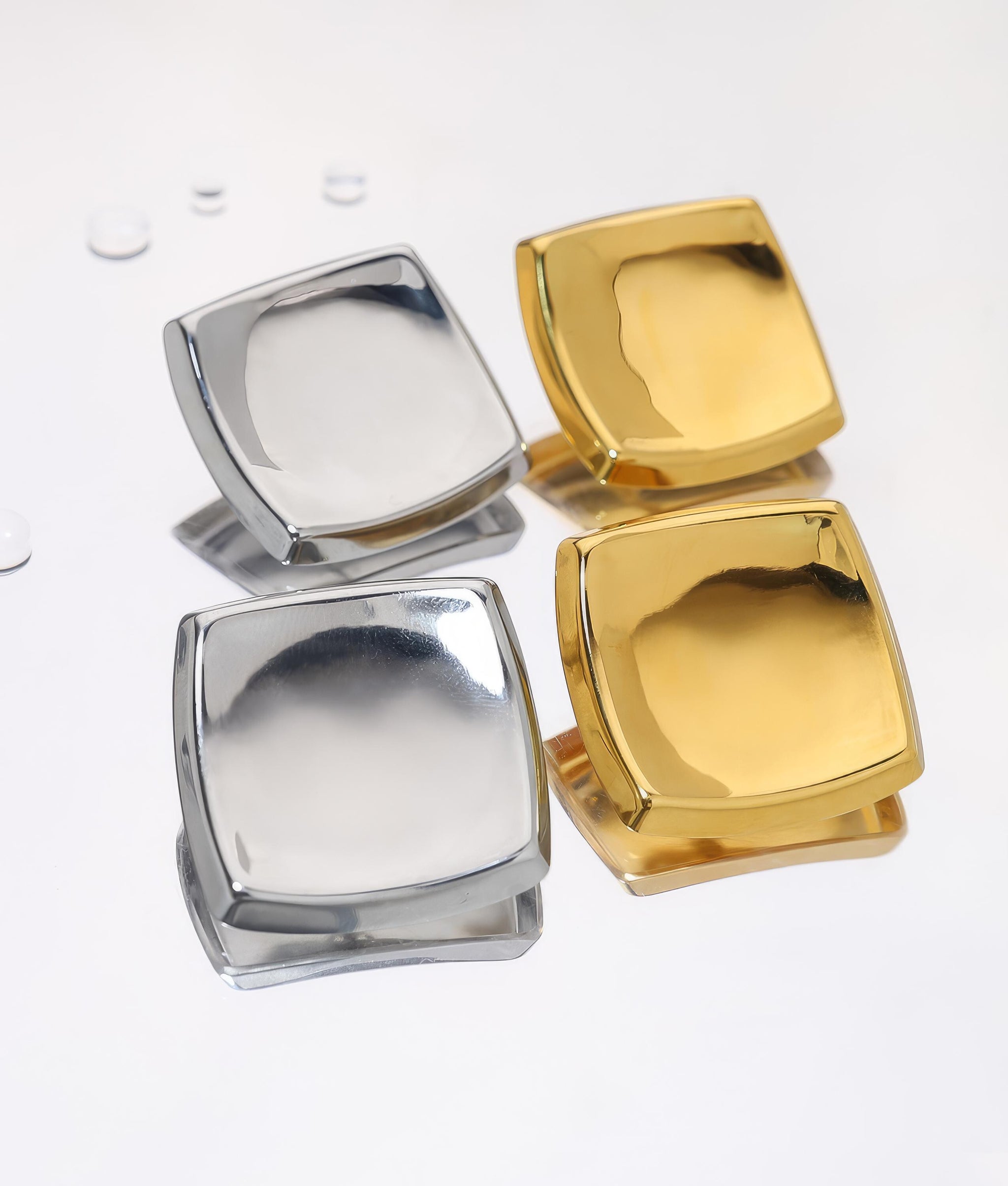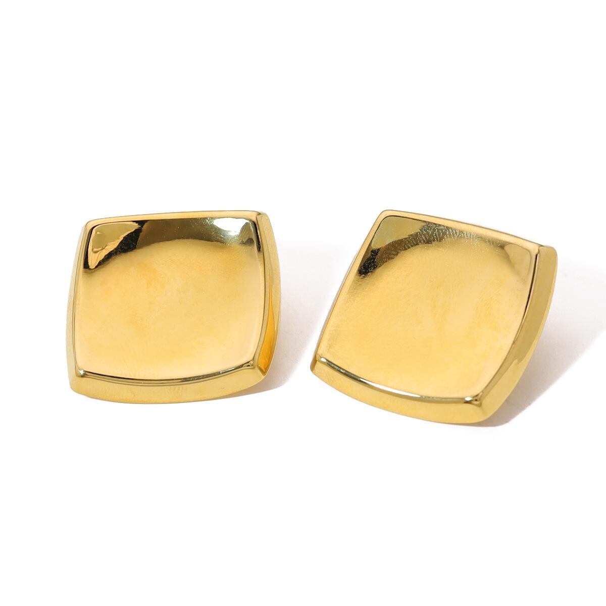 gold square earrings, geometric studs, minimalist jewelry, modern gold studs, statement earrings, stainless steel studs, trendy gold jewelry, unique gift her, glossy gold earrings, bold stud earrings, everyday jewelry women, artistic gold studs