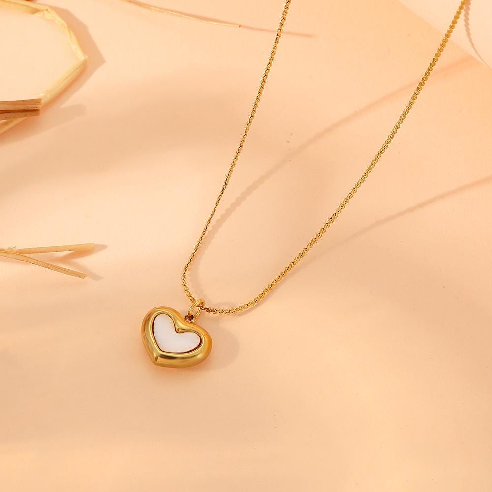This stunning Mother of Pearl Heart Pendant Necklace brings a blend of elegance and charm to any outfit. The heart-shaped pendant, inlaid with iridescent mother of pearl, radiates a natural beauty that complements the 18K gold-plated frame and chain. Its minimalist design makes it perfect for everyday wear, adding a soft, feminine touch to both casual and formal looks.