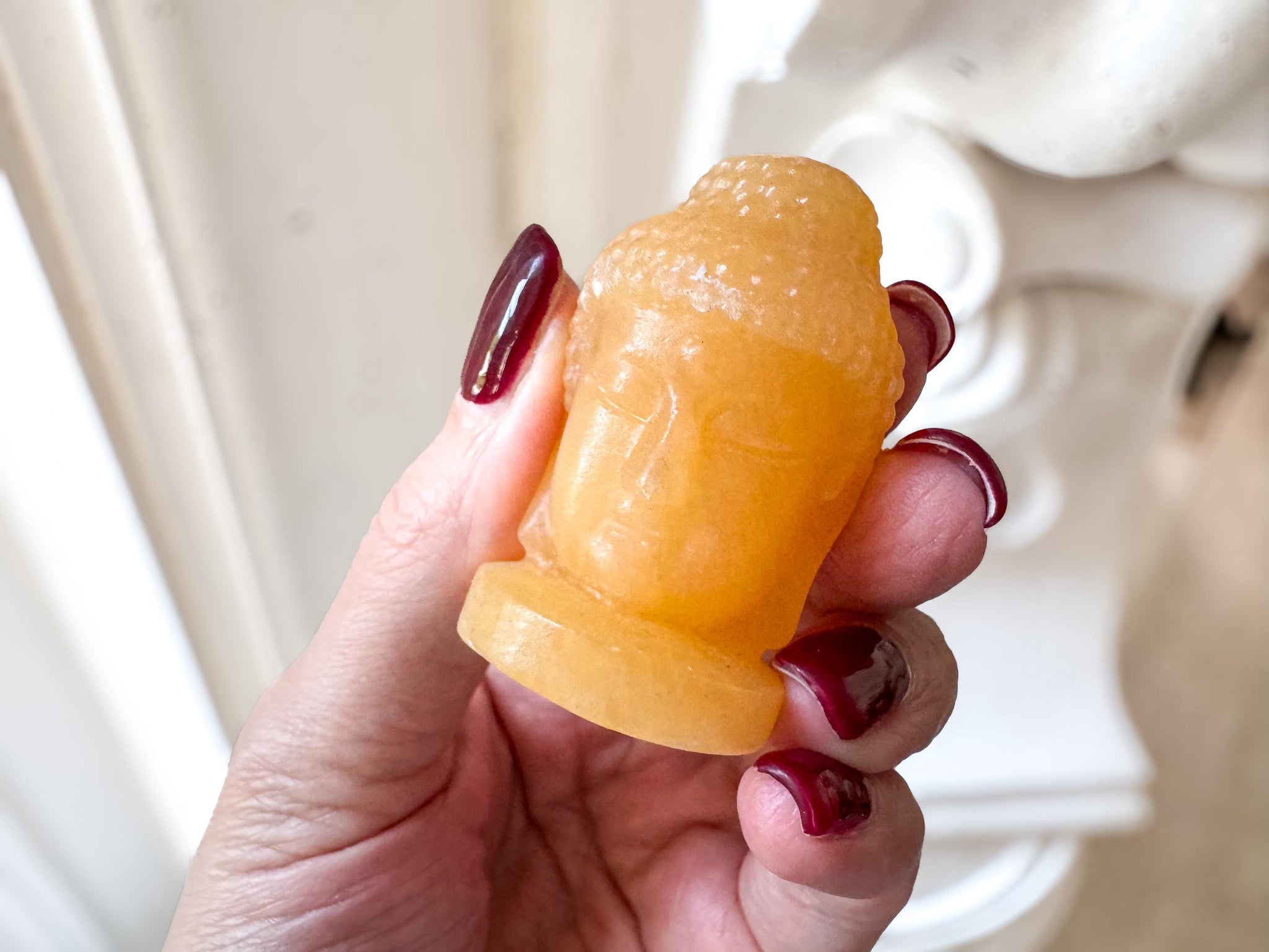 Infuse your space with joy, clarity, and spiritual calm with this hand-carved Orange Calcite Buddha Head. Orange Calcite is known for its uplifting energy, stimulating creativity, enhancing motivation, and restoring emotional balance. Combined with the serene energy of the Buddha, this piece is perfect for anyone seeking inner peace, mindful focus, and positive transformation.