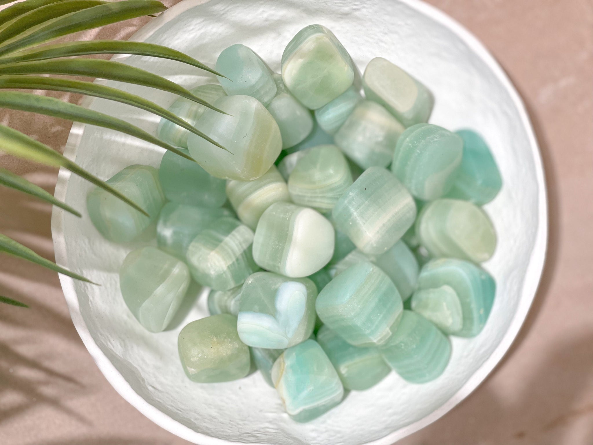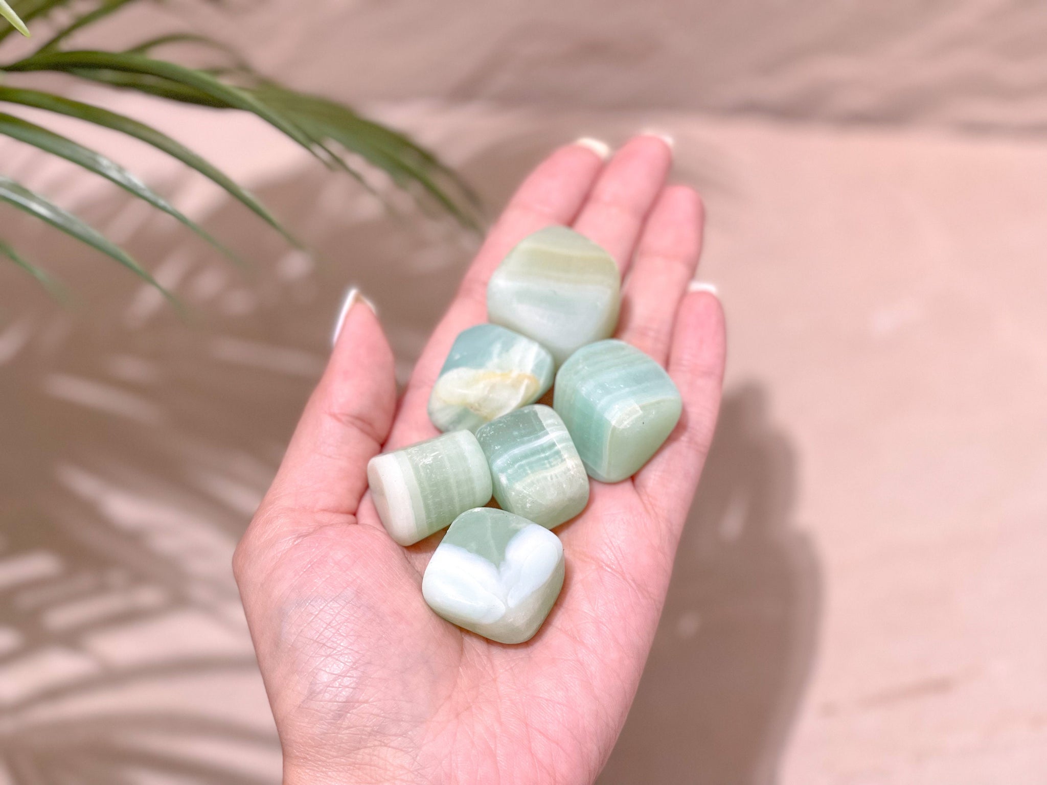 The tumbled pistachio calcite crystals are great for carrying in your pocket or placing on your bedside table for a calming and grounding effect. They are also perfect for use in meditation or for placing on your desk to bring positivity and calm to your work environment.
