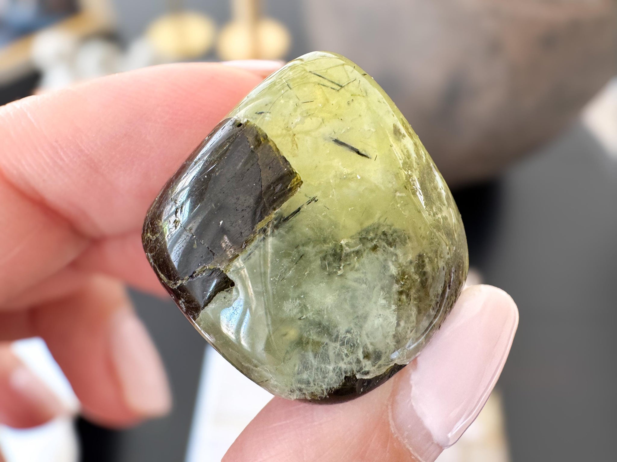 • Contains natural Epidote inclusions, which amplify Prehnite's energy and help release negativity