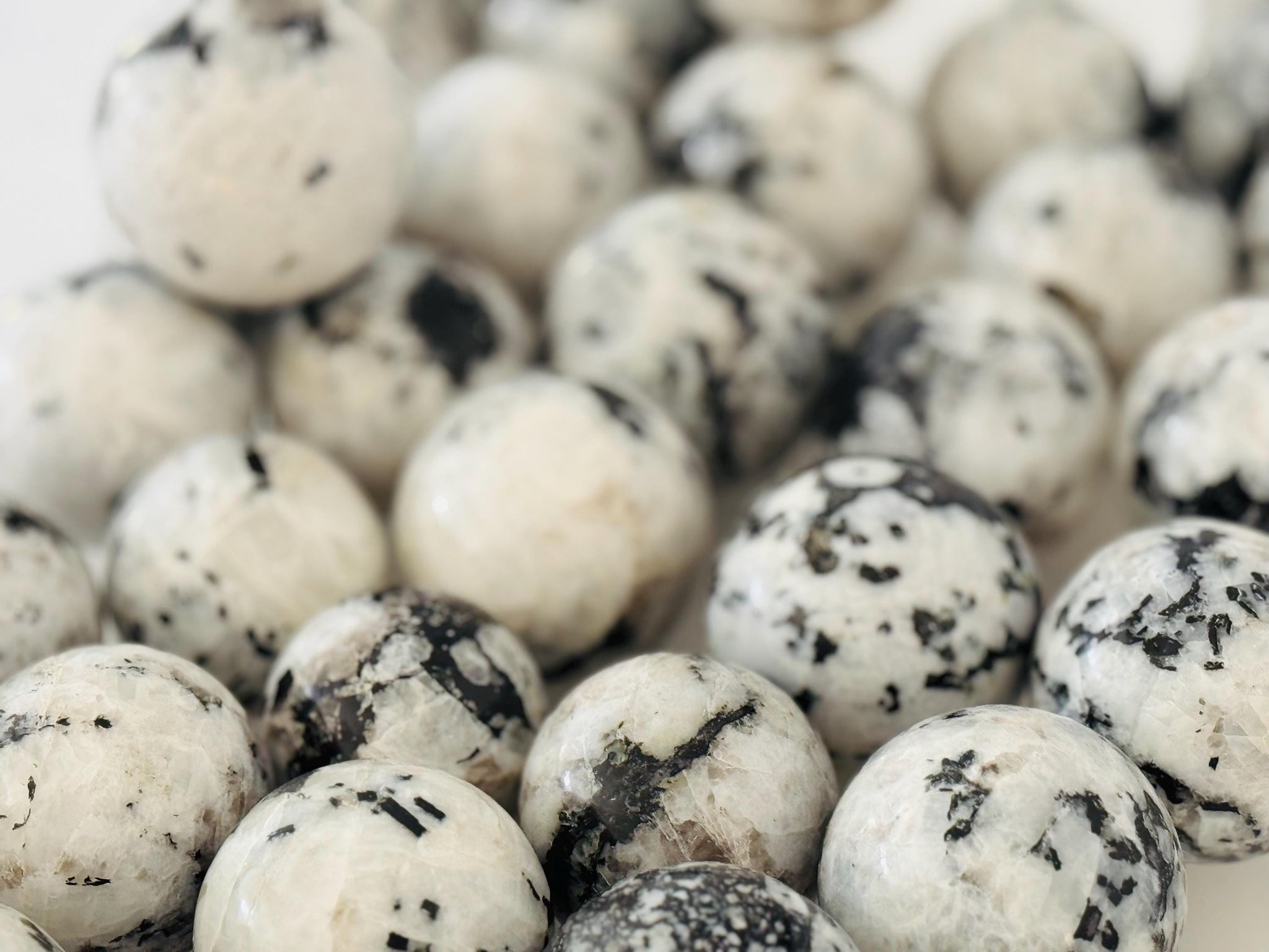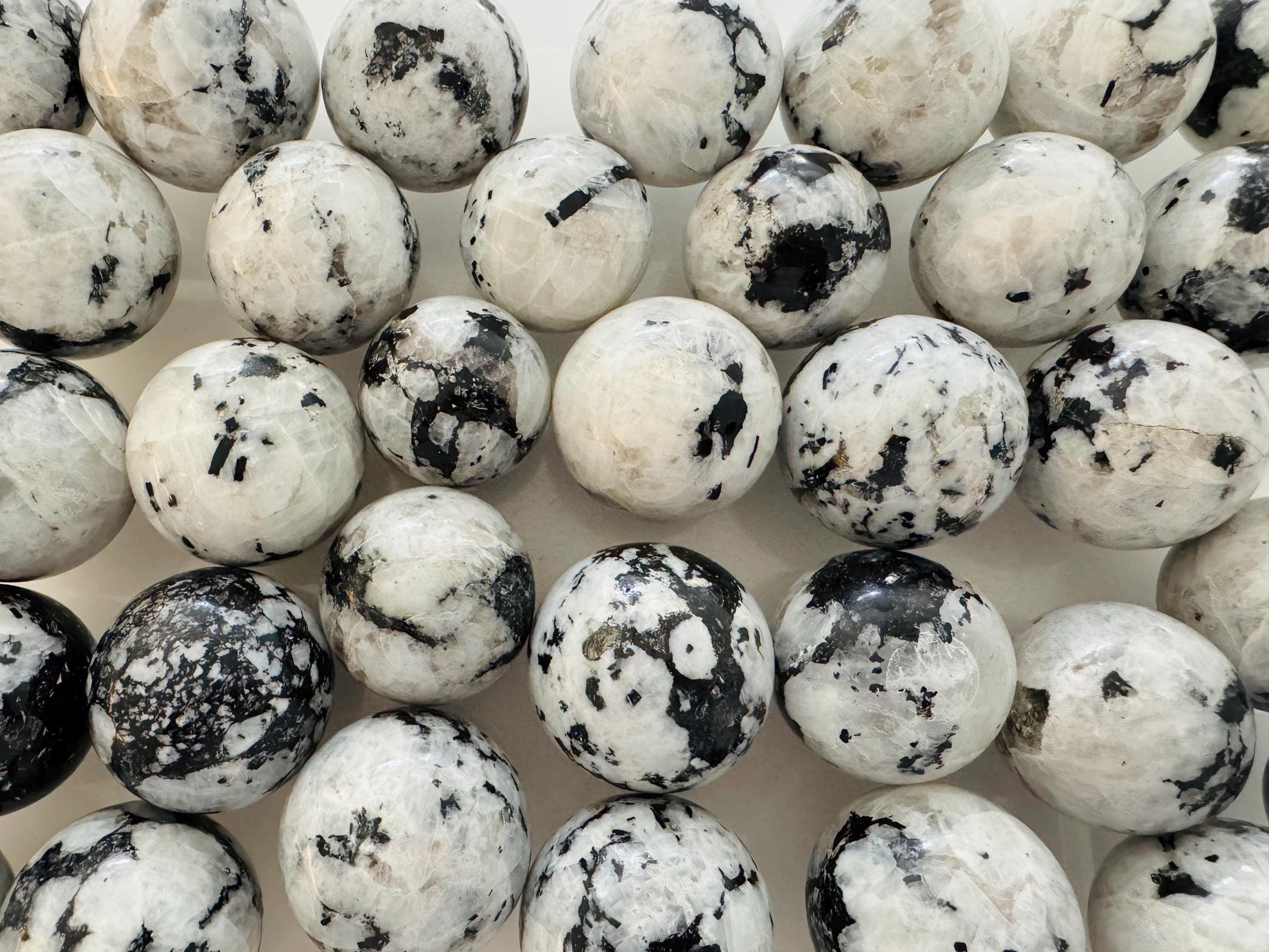 Discover the mystical energy of Rainbow Moonstone! These polished crystal spheres (available in 40-45mm & 50-55mm) feature a luminous glow with flashes of blue and white, symbolizing intuition, emotional balance, and spiritual protection. Used for chakra healing, reiki, meditation, and energy work, this powerful gemstone enhances inner wisdom, creativity, and clarity. Place it in your home for positive energy, moon magic, and manifestation rituals or gift it to a loved one as a unique spiritual gift.