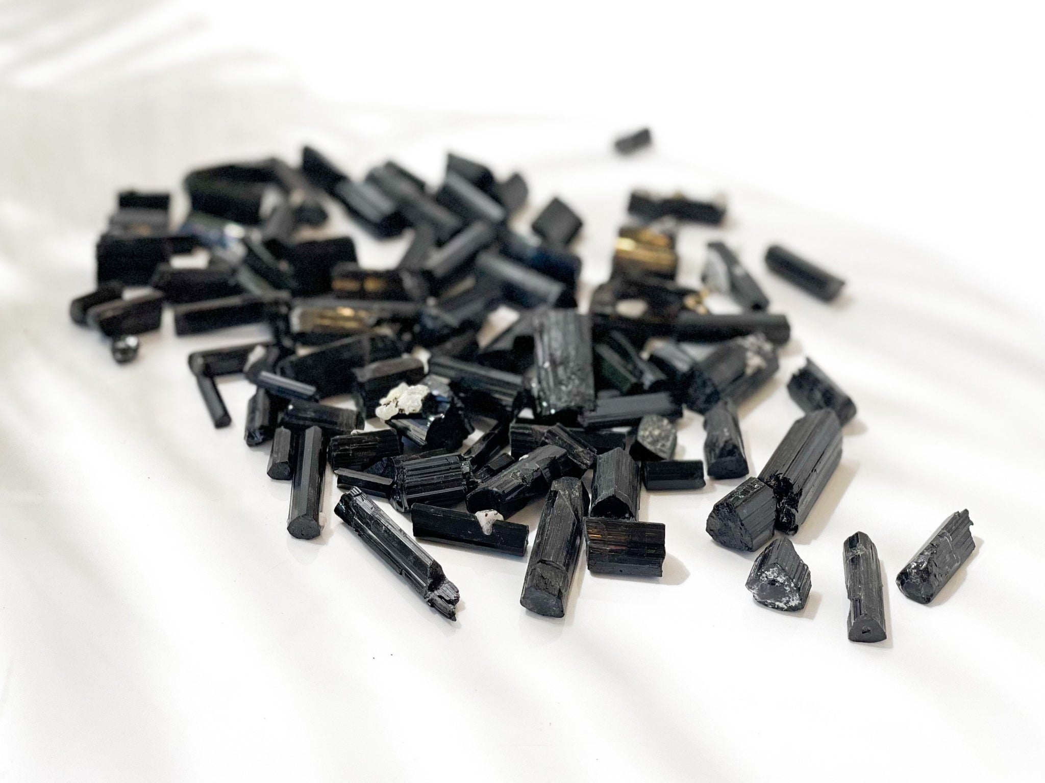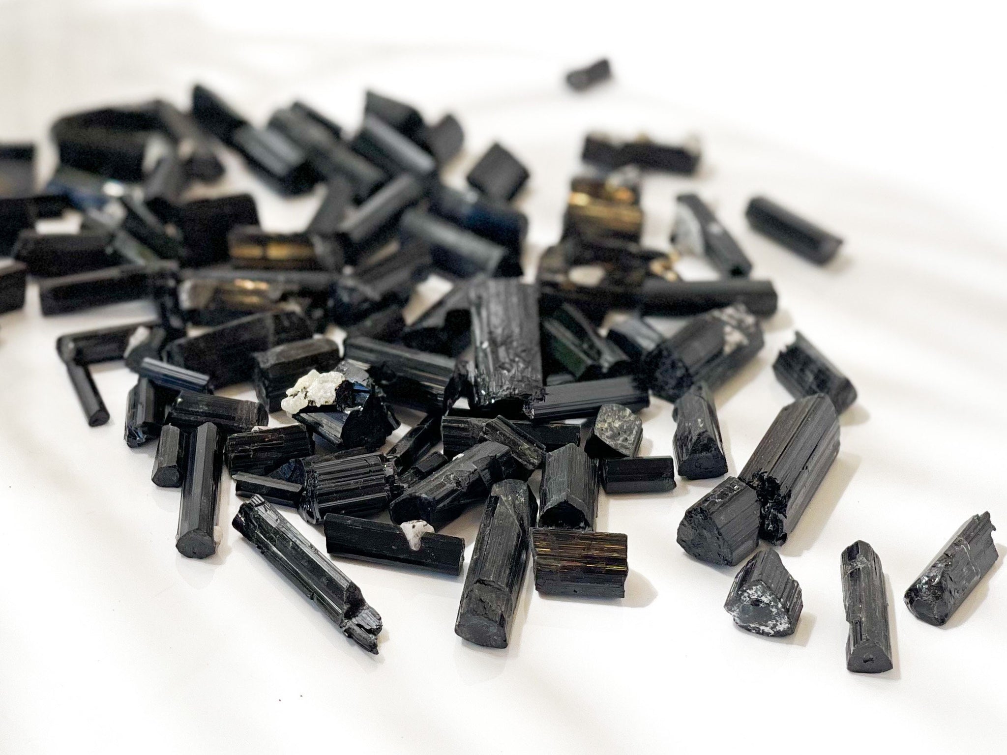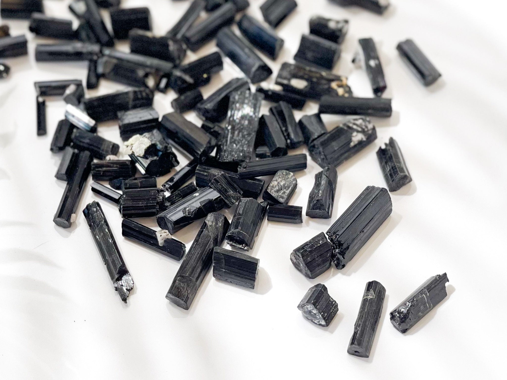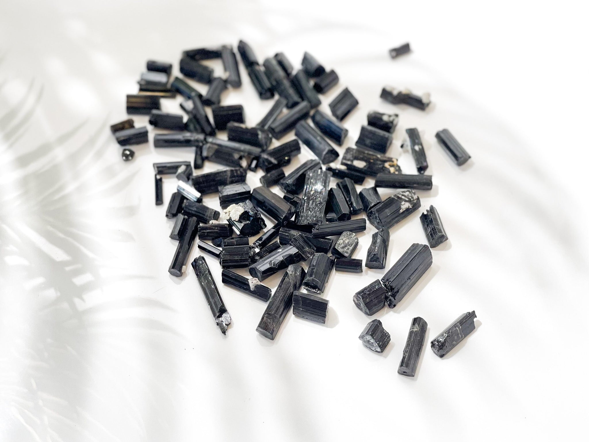 Black tourmaline is a powerful crystal that is often used for its grounding and protective properties. It is believed to help cleanse negative energy, block electromagnetic pollution, and provide a sense of safety and security. These small black tourmaline chips are a great way to incorporate the benefits of this crystal into your life.