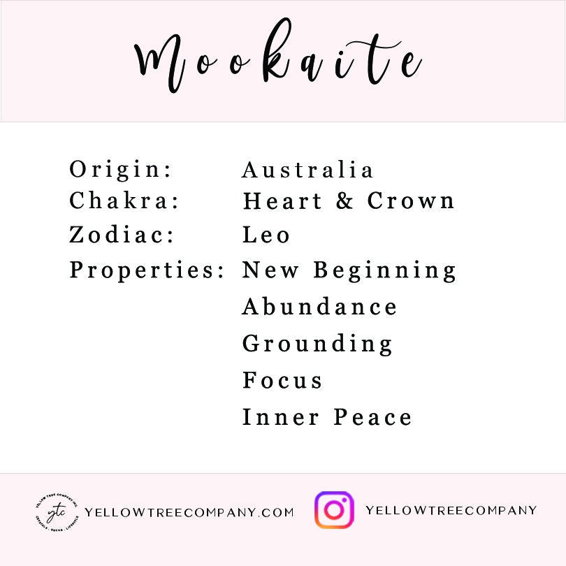 Mookaite provides a protective shield against negative or dangerous situations, eliminating and blocking unwanted outside influences and distractions, and revealing what is concealed. Mookaite promotes energy and new ideas, helping us gain enthusiasm and bringing the excellence of ourselves, bring kindness to ourselves and others. Mookaite helps with contacting those who have passed on.