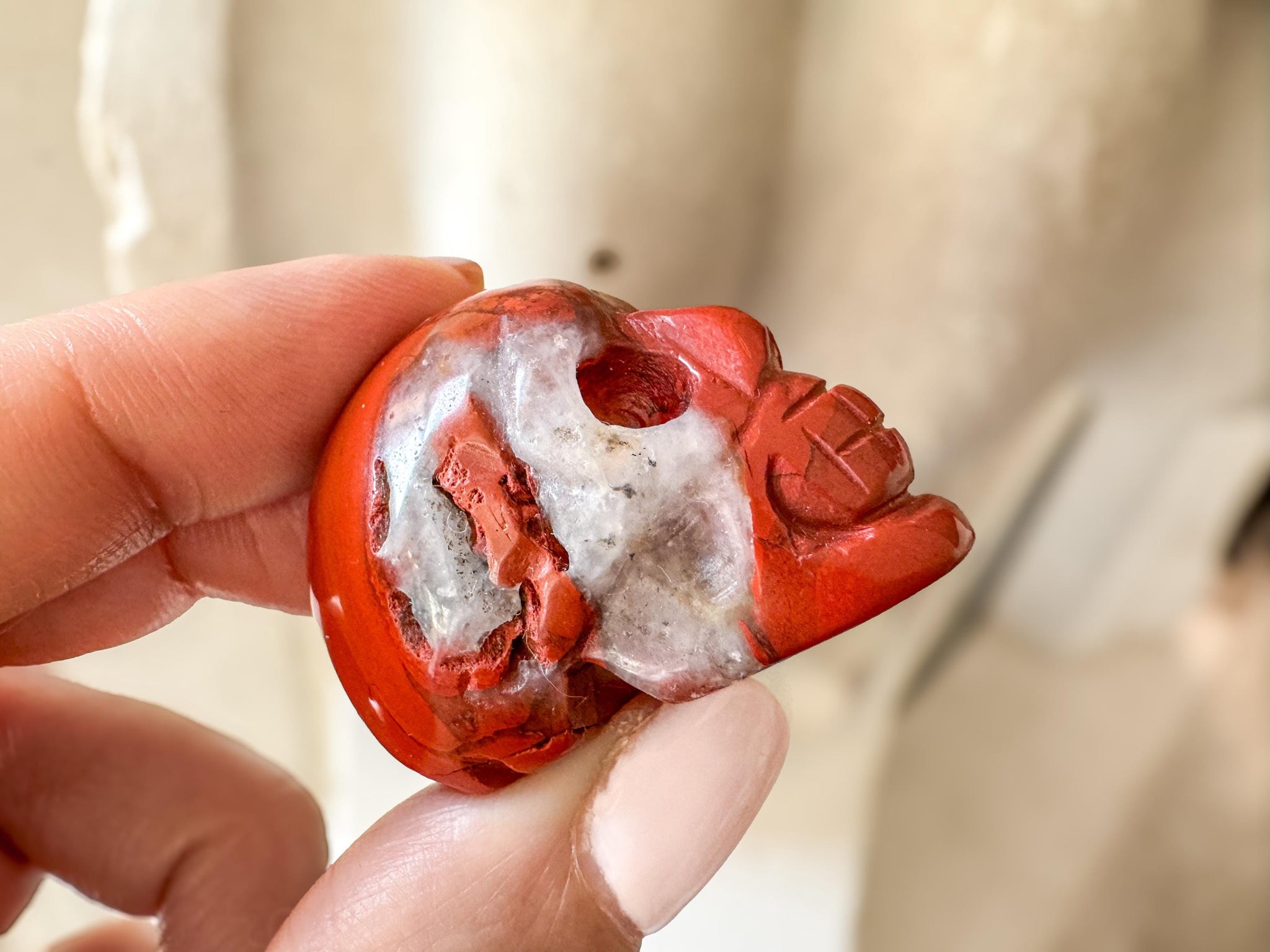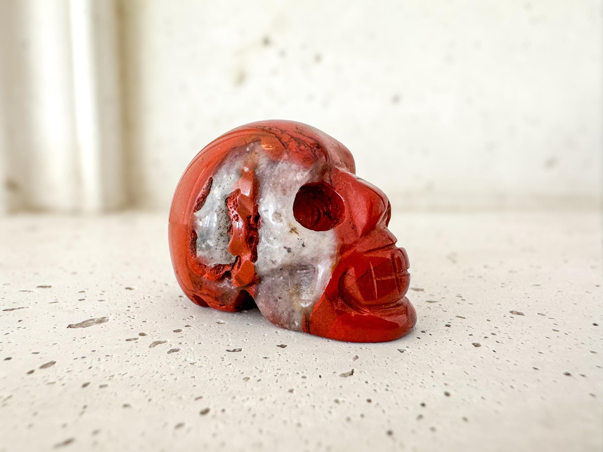 With its deep, earthy red tones and solid energy, Red Jasper is ideal for promoting courage, stamina, and grounding. Use it during meditation, reiki, or as a protective charm in your space. Each skull is hand-carved from natural stone, making every piece unique.