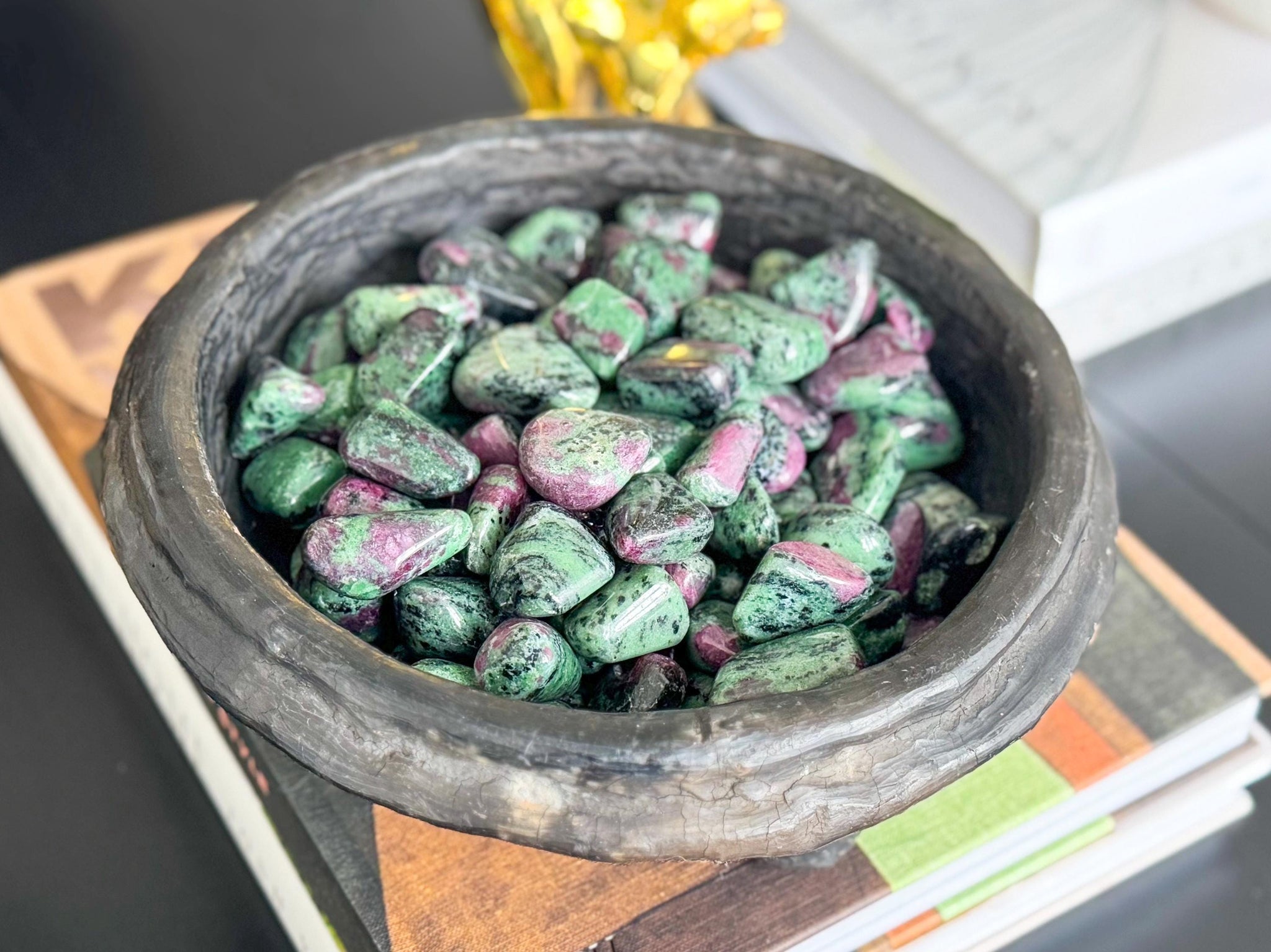 Experience the powerful union of passion and peace with our Ruby Zoisite tumbled stones, also known as Anyolite. This striking natural crystal combines the vibrant red of Ruby with the grounding green energy of Zoisite, making it a go-to stone for those seeking emotional healing, energy balance, and spiritual transformation.