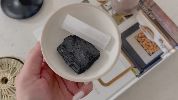 This powerful Selenite and Black Tourmaline Crystal Set is designed to cleanse, protect, and restore balance to your energy. Selenite is known for its high-vibrational cleansing ability, clearing negative energy and recharging both crystals and the aura. Black Tourmaline is a strong grounding and protective stone, believed to absorb negativity and shield against unwanted influences. Together, they create a perfect harmony of light and protection, helping to release heavy emotions, clear the mind, and promote inner peace. This set is ideal for meditation, energy cleansing, or placing in your home or workspace for continuous energetic protection and renewal.