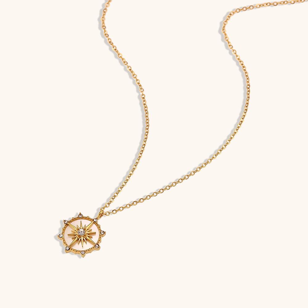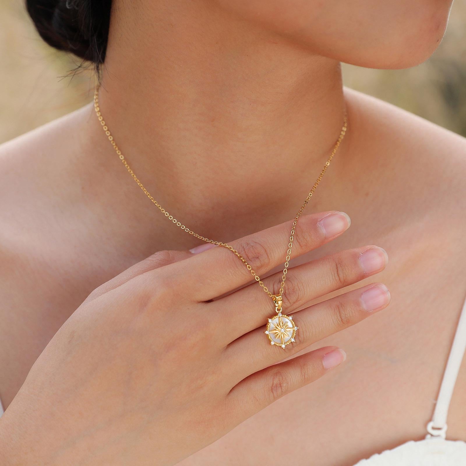 Embrace style and symbolism with our Compass Star Necklace, featuring a delicate eight-point star pendant with a unique shell inlay. Crafted in a chic, minimalist design, this necklace represents luck, guidance, and a journey toward new horizons. Its elegant charm makes it perfect for both everyday wear and special occasions, adding a touch of meaning to any look.