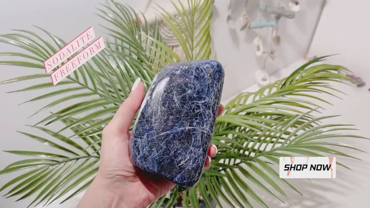 Sodalite is a popular healing crystal known for its calming and soothing properties. A large sodalite freeform is a great way to bring the benefits of this stone into your home or office. The smooth, natural curves of a freeform make it a beautiful addition to any crystal collection, and its larger size means it will have a greater impact on your space. Sodalite is known for promoting emotional balance, mental clarity, and peace of mind, making it a great choice for those looking to reduce stress and anxiety. Whether you place it on your desk, in your living room, or on a shelf, a large sodalite freeform is sure to become a beautiful and meaningful addition to your space.