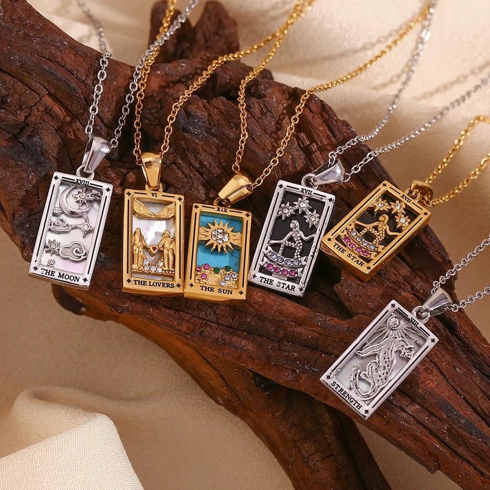 The Meaning of The Lovers Card: The Lovers card embodies love, trust, and meaningful relationships. It signifies deep connections, choices, and the harmony achieved when we are true to ourselves and open to others. Wearing this necklace serves as a reminder to nurture your relationships and make decisions that honor both your heart and values.