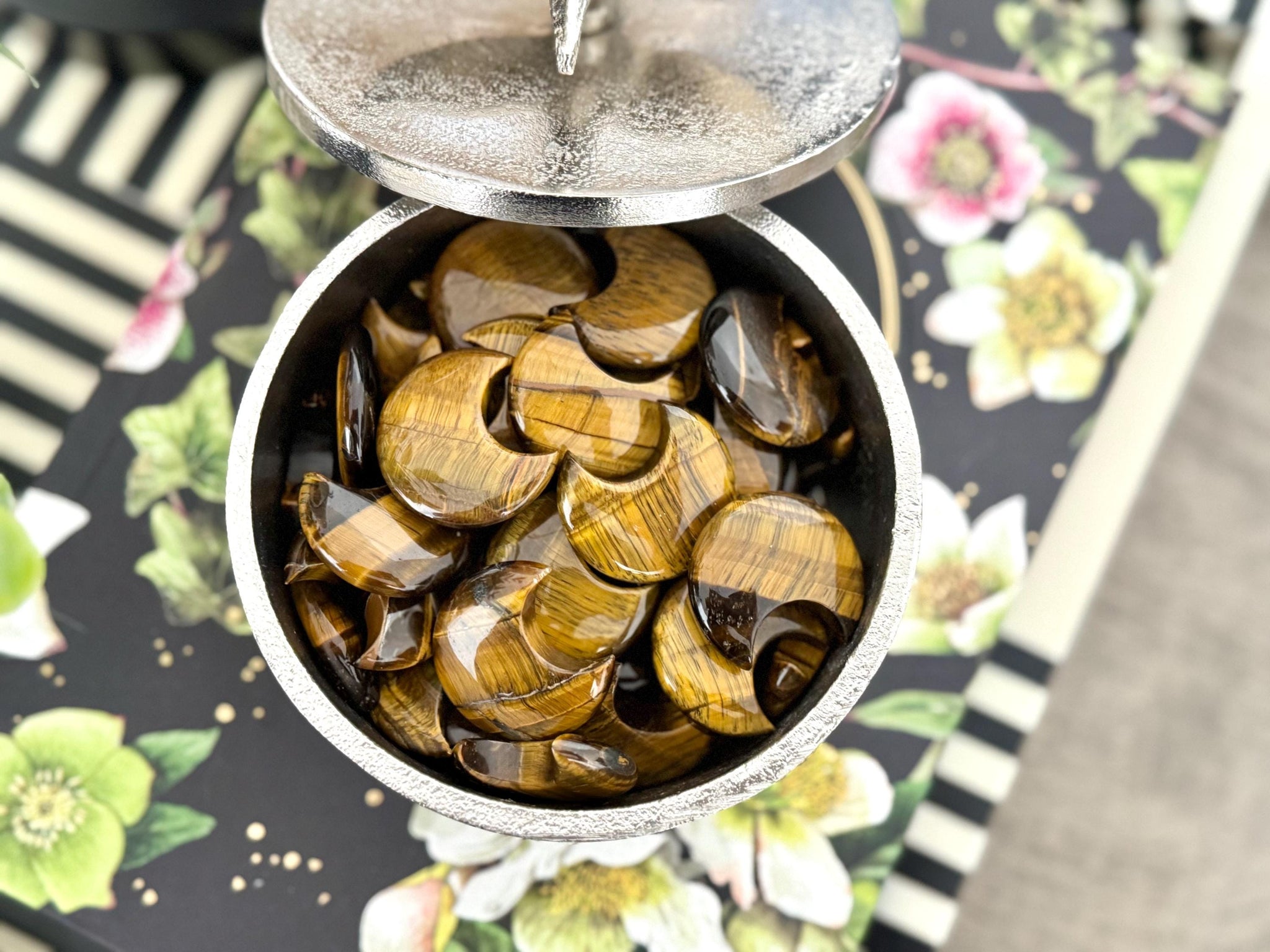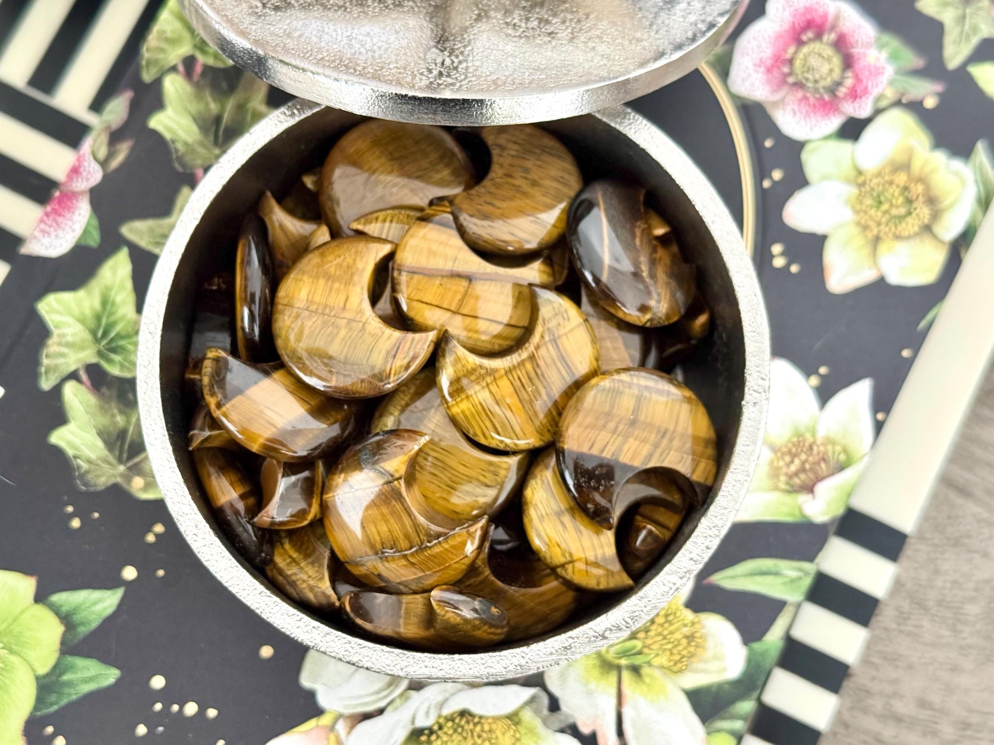 Harness the bold, grounding energy of this 30 mm Tiger Eye Crescent Moon—perfectly polished to capture the light and the attention. Known as the "Stone of Courage," Tiger Eye offers protective and confidence-boosting energy to help you stay grounded, balanced, and clear-headed.